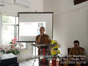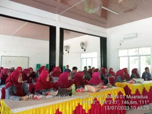 Muaradua- Dalam rangka menyambut kurikulum merdeka, UPT SMPN 01 Muaradua menyelenggarakan In House Training (IHT) Implementasi Kurikulum Merdeka Program Sekolah Penggerak Tahun Pelajaran 2023/2024. Di laksanakan selama 6 hari terhitung tanggal 13 Juli 2023 sampai dengan tanggal 18 Juli 2023 bertempat di Aula UPT SMPN 01 Muaradua. Pembukaan kegiatan ini di hadiri oleh seluruh dewan guru dan staf tata usaha UPT SMPN 01 Muaradua.